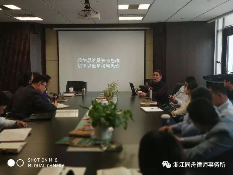 同舟所还邀请了鄞州区司法局原党组书记吴启钱同志作了题为《政治思维&法律思维》的“扫黑除恶”专项教育,吴书记从多个方面分析了当前“扫黑除恶”专项斗争工作的意义,也要求同舟所律师在“扫黑除恶”专项斗争中应当提高政治思维,提高执业风险防控工作,做好自我保护。